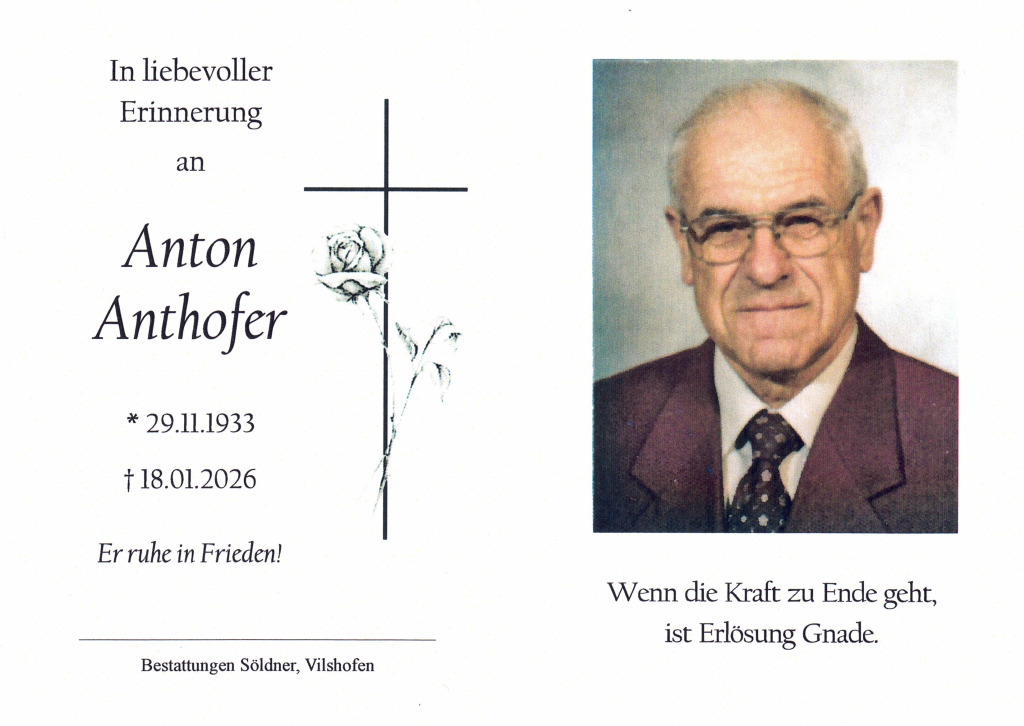Anton Anthofer war seit 1956, also insgesamt 70 Jahre, Mitglied unserer Feuerwehr.
