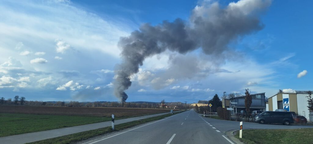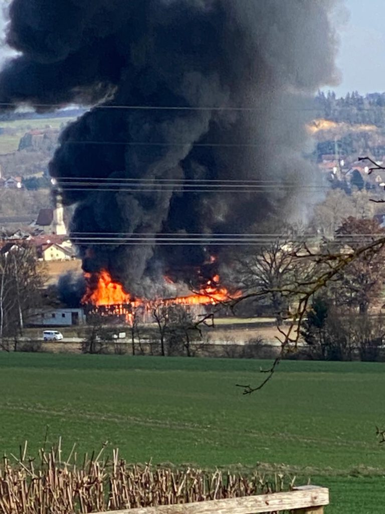 Am Mittwochnachmittag wurden wir zu einem Brand auf einem landwirtschaftlichen Anwesen im Schutzbereich der Feuerwehr Walchsing alarmiert. Beim Eintreffen standen eine Scheune sowie eine Maschinenhalle in Flammen.